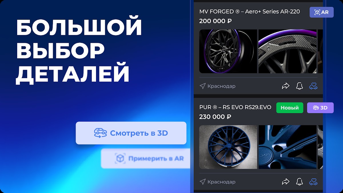 — Детализированная графика и точная физика автомобилей, позволяющая оценить не только внешний вид, но и поведение машины на дороге. AR-режим, позволит вам примерить диски на ваш настоящий автомобиль и провести тест-драйв любого авто в дополненной реальности.