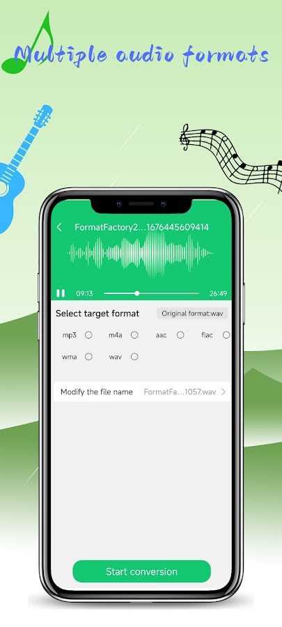 ● Поддерживает аудиоформаты, такие как MP3, WAV, WMA, M4A, ACC, FLAC и др.