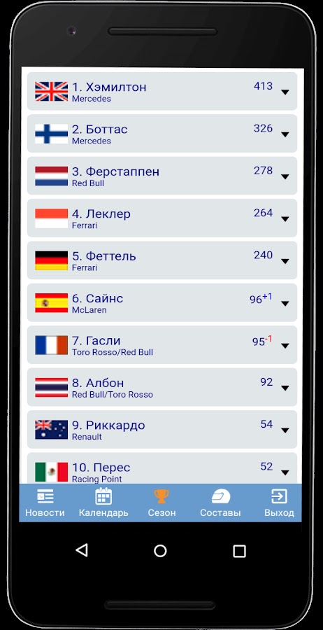 Свежие новости Формулы-1, календарь этапов с указанием оставшегося времени, live-результаты, составы команд, расширенная статистика, форумы, конкурс и многое другое. Официальное приложение сайта F1Report.Ru.