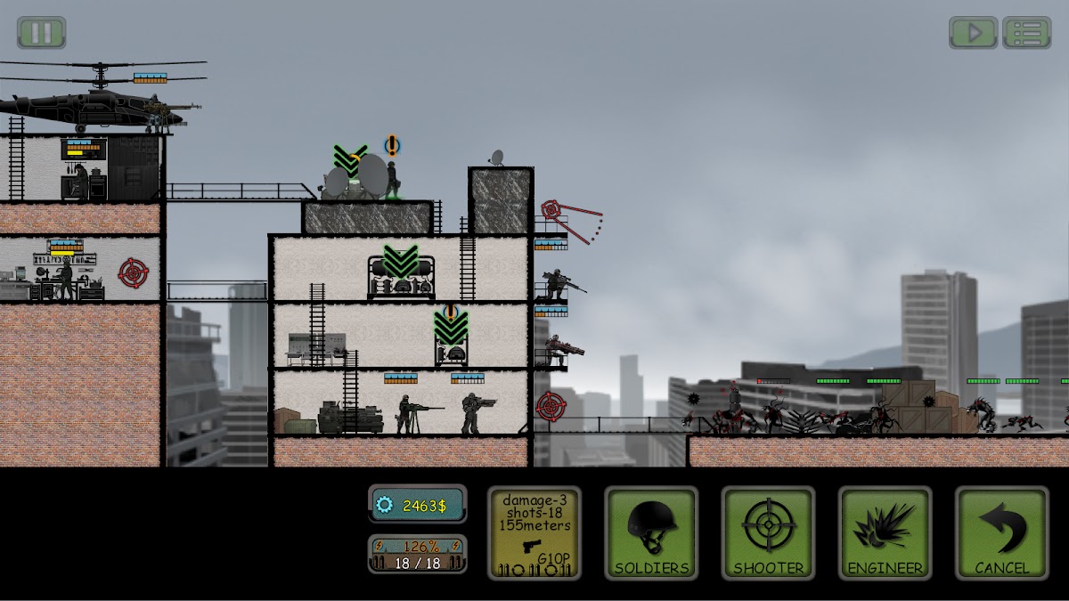 Вооружайте солдат, используйте бонусы, и не забывайте следить за уровнем энергии ваших бойцов.