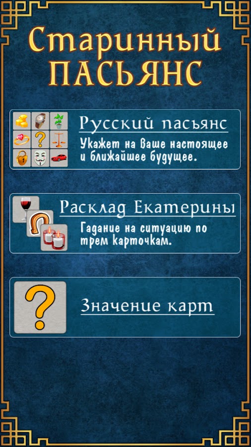 Скачайте приложение Русский пасьянс гадание для Android бесплатно - последняя версия (1.0.0.12) уже доступна для установки на ваш телефон или планшет.