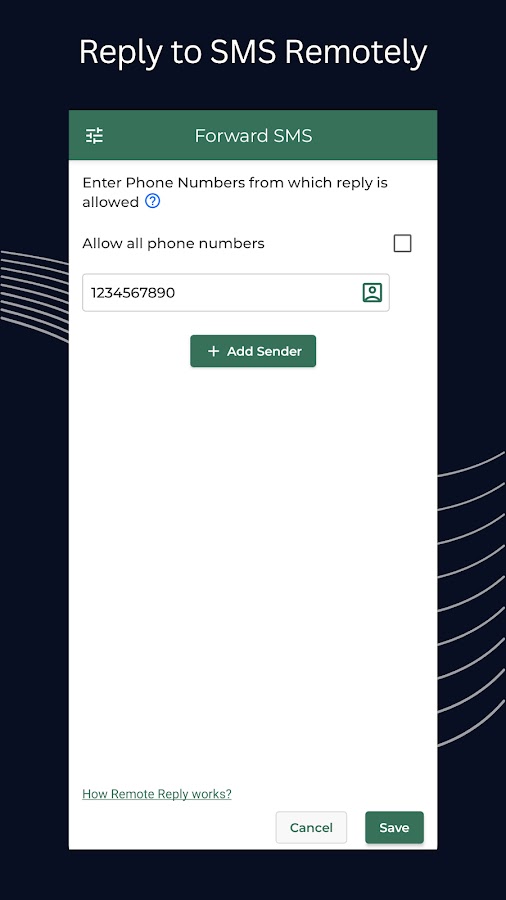 * Это приложение для пересылки SMS автоматически пересылает SMS, полученные на ваш телефон, на номер телефона, электронную почту, в Telegram или на URL-адрес.