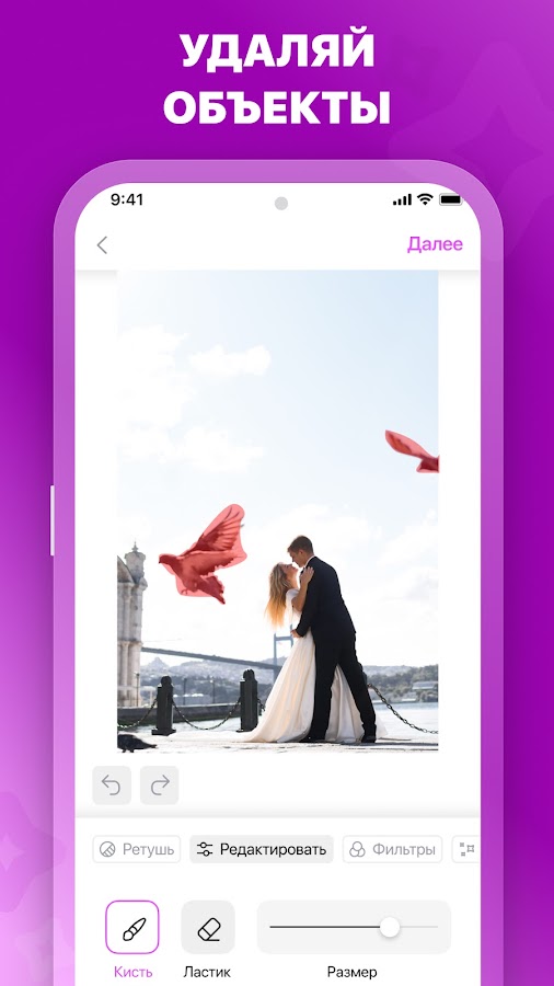 2. Регулируемая кисть для ретуширования: настройте размер ластика или кисти, чтобы они подходили под каждую деталь. Ластик помогает более точно отредактировать фото! 🖍
