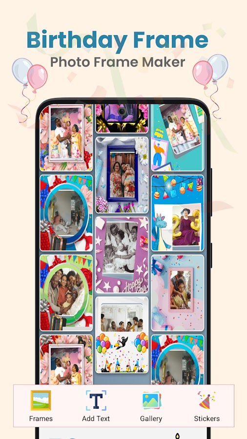 Представляем приложение HBD Frame или Happy Birthday Photo Frame, инструмент для создания эффектов фоторамки, который позволяет творчески и весело создавать собственные фотографии на день рождения. Приложение Photo Frames Happy Birthday призвано поднять настроение празднования дня рождения, предлагая широкий спектр функций, включая шаблоны рамок для дня рождения, редактор фотографий HBD, поздравительные открытки на день рождения и возможность создавать фоторамки с цитатами на день рождения. С фоторамкой «С Днем Рождения» каждый момент дня рождения станет ярким и запоминающимся после использования редактора изображений «С Днем Рождения» и бесплатного приложения «С Днем Рождения».