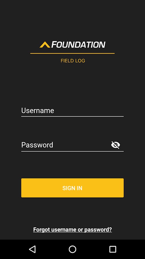 Клиенты Foundation Software могут загрузить приложение FOUNDATION mobile® Field Log для устройств Android и войти в систему, используя учетную запись FOUNDATION mobile® с поддержкой Android. Чтобы включить учетную запись для Android, обратитесь к администратору поддержки программного обеспечения.