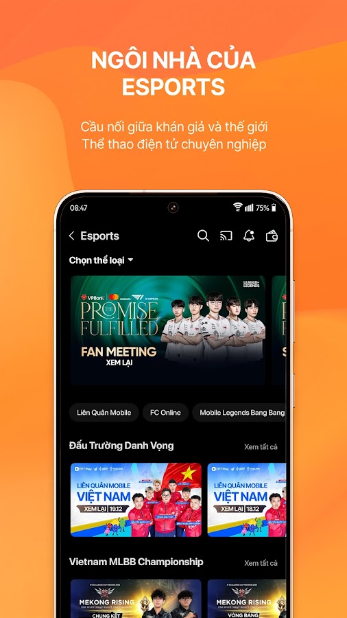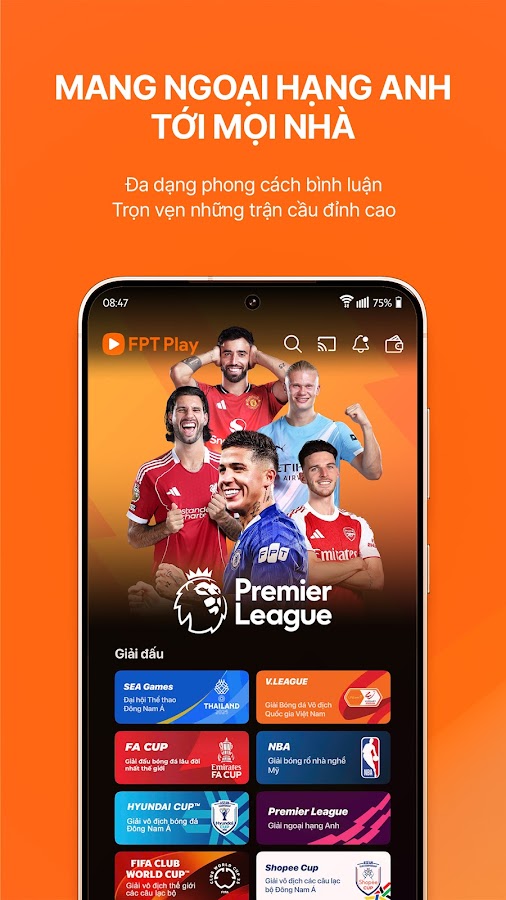 — Высочайший уровень Спорт: Английская Премьер-лига, Кубок Англии по футболу, Кубок Азии, Лига LPBank V.League 1, а также NBA, UFC, PPA и многие другие захватывающие лиги.