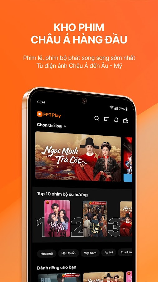 FPT Play предлагает всесторонний опыт развлечений с огромной библиотекой высококачественного контента, удовлетворяющей все ваши потребности в просмотре — от азиатских сериалов, аниме и телевидения до спортивных турниров высшего уровня.