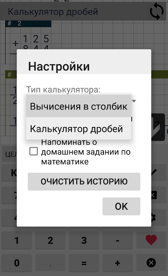 Два в одном. Калькулятор дробей и калькулятор в столбик. Версия без рекламы.