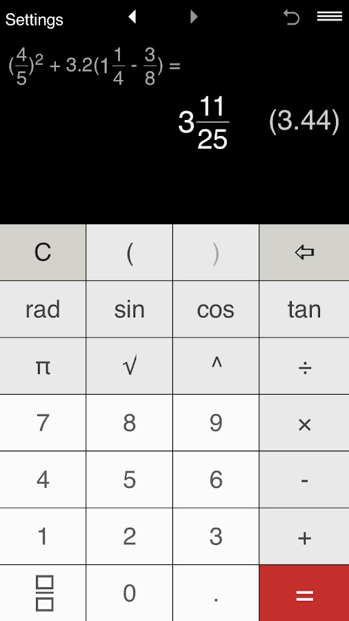Fractions Pro — калькулятор дробей со скобками и степенями.