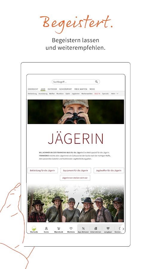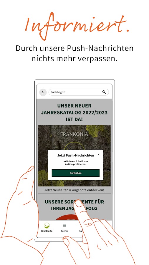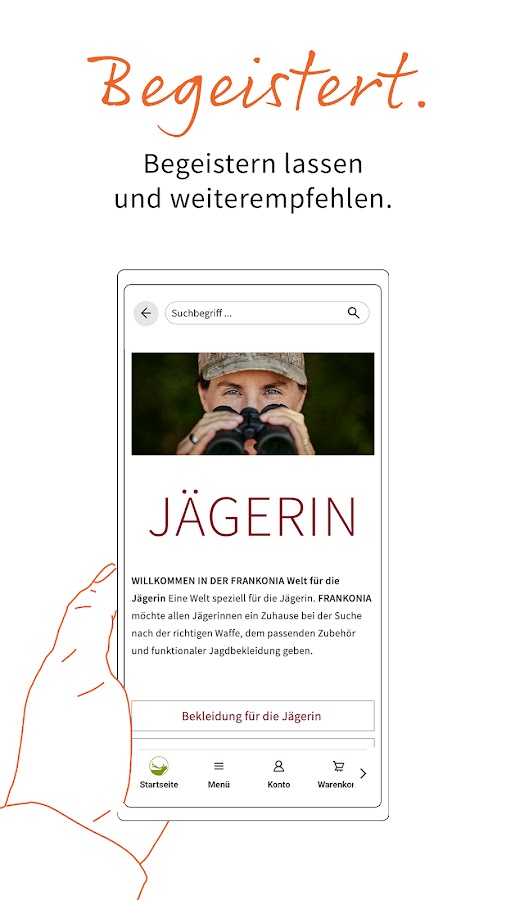 Загрузите приложение Frankonia и откройте для себя мир охоты, спортивной стрельбы, активного отдыха и моды прямо на своем смартфоне!