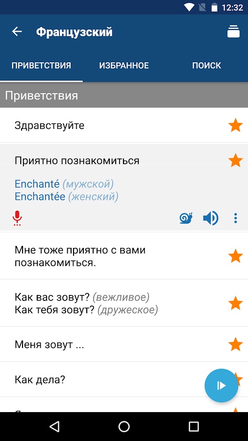 • Сохранение и управление фразами в Избранном