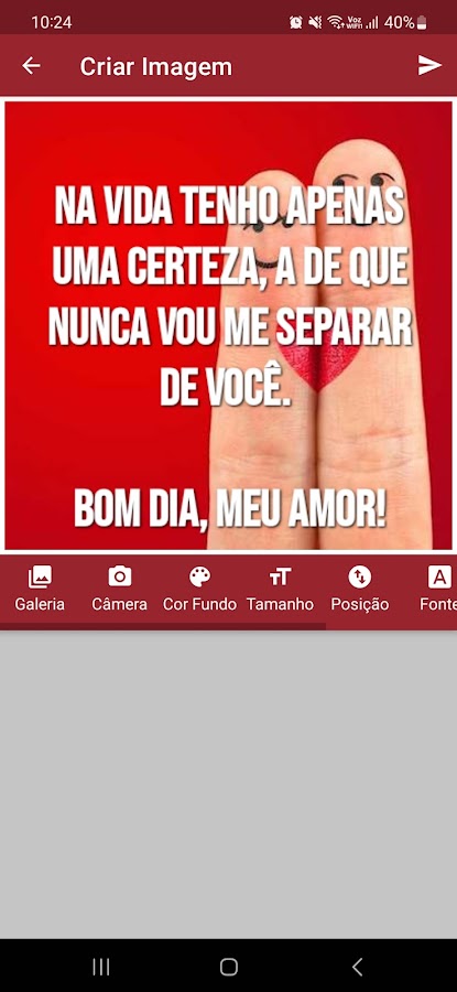 • Позволяет создавать изображения с фразами для WhatsApp с вашими любимыми фотографиями.