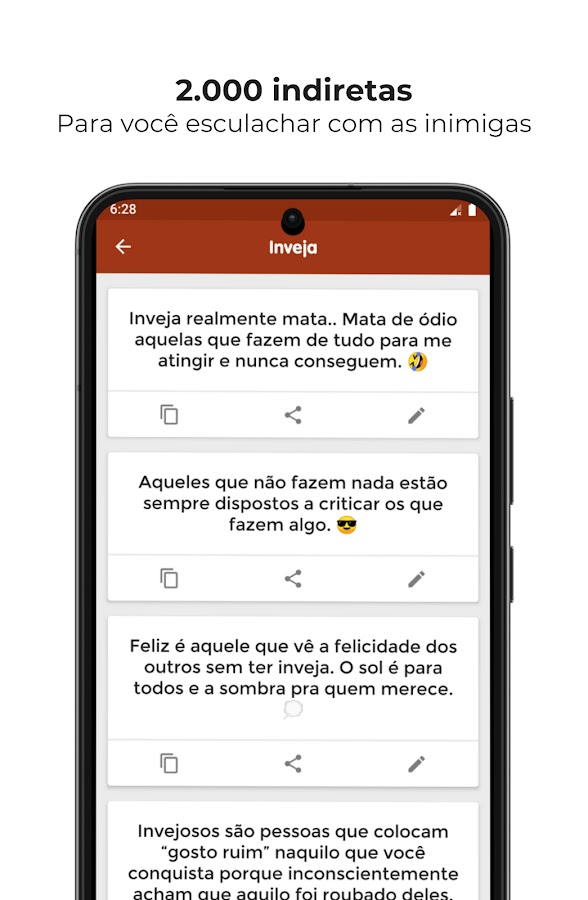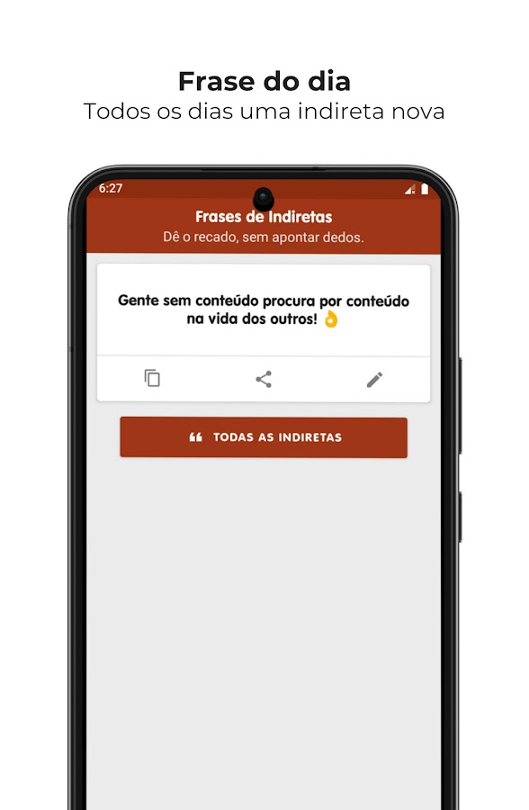 Скачайте приложение Frases de Indiretas pra Status для Android бесплатно - последняя версия (6.0.0 med) уже доступна для установки на ваш телефон или планшет.