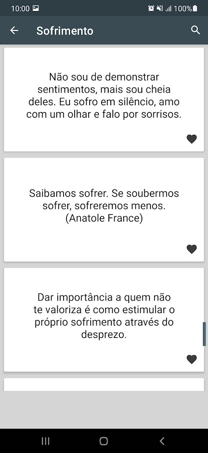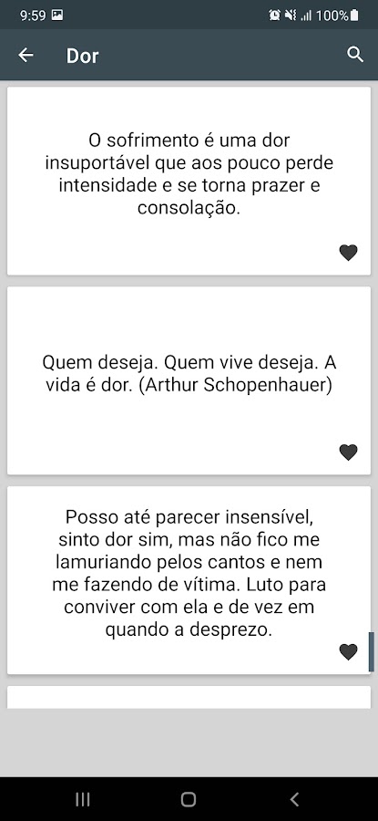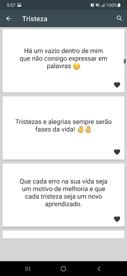 Жизнь — это не только радость, но и страдания и боль, которую мы изучаем и ценим жизнь и окружающих нас людей. Размышляя об этом, мы создали приложение «Фразы печали», в котором вы найдете сотни грустных фраз для худших моментов вашей жизни, являющихся фразами скорби, боли, разочарования, депрессии, одиночества, прощания, грусти, страдания, любящего разочарования. Приложение позволяет копировать фразы грусти в статус WhatsApp, а также отправлять их через Facebook, Twitter, Tumblr, Instagram и т. Д.