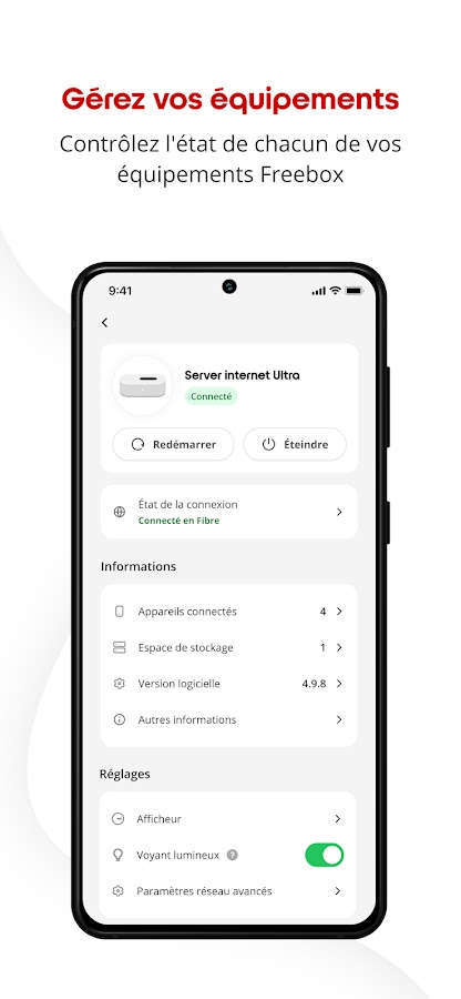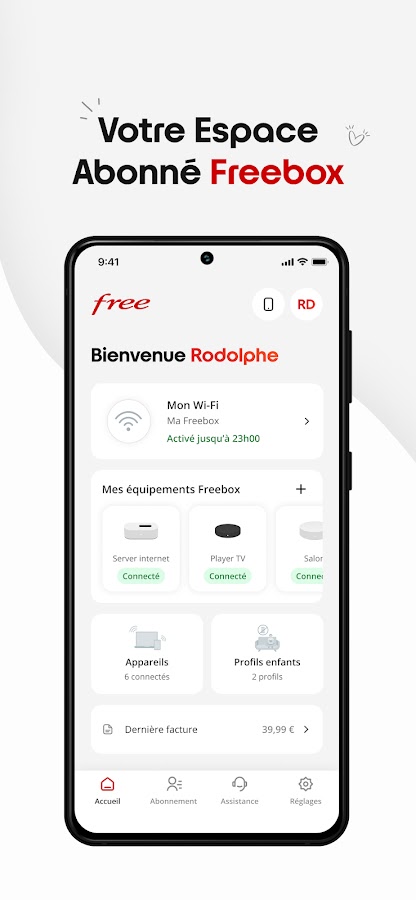 Независимо от того, являетесь ли вы абонентом Freebox или мобильной связи Free, все необходимое находится здесь, в приложении: отслеживание использования, управление тарифами и оборудованием, совместное использование Wi-Fi через QR-код, расширенный родительский контроль, доступ к персональной поддержке и многое другое… Все здесь!