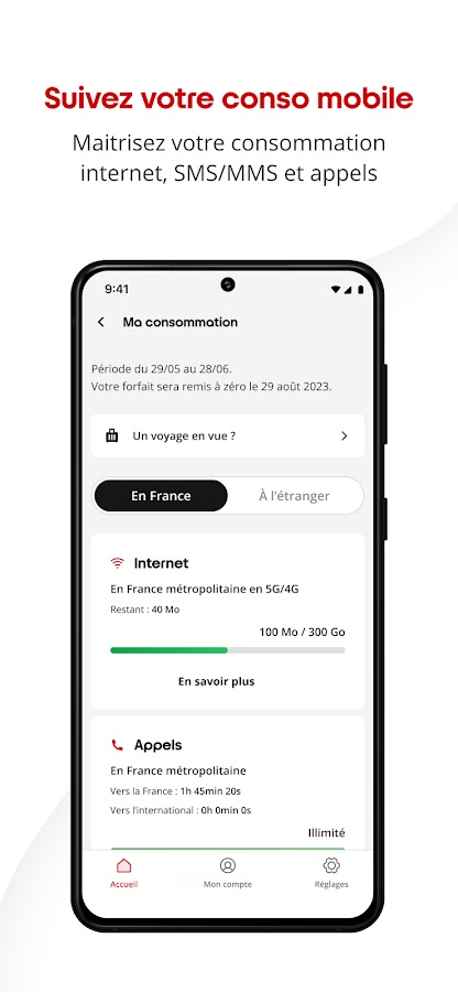— Во Франции и за рубежом проверяйте использование данных, звонков и SMS и избегайте превышения лимитов вашего тарифного плана.