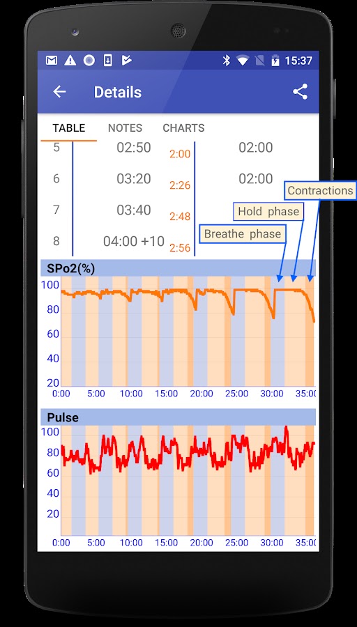 ⚡️ Возможность отметить время начала сокращений диафрагмы (contractions)