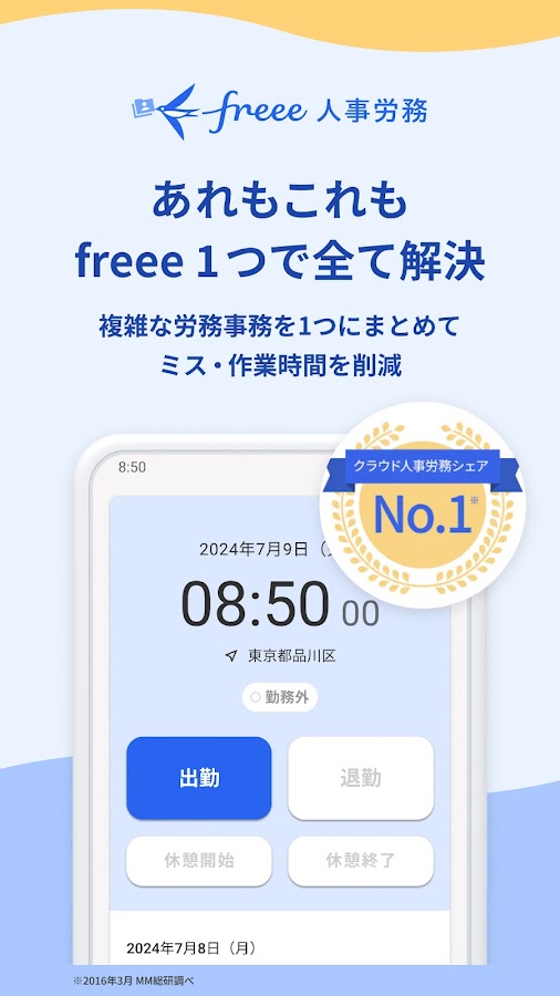 Информация о freee人事労務:アプリで勤怠入力・給与明細閲覧