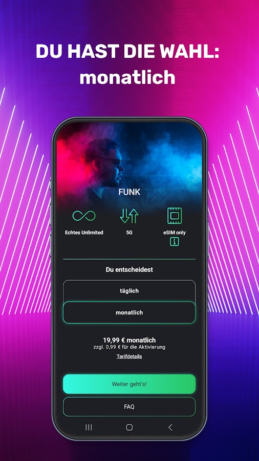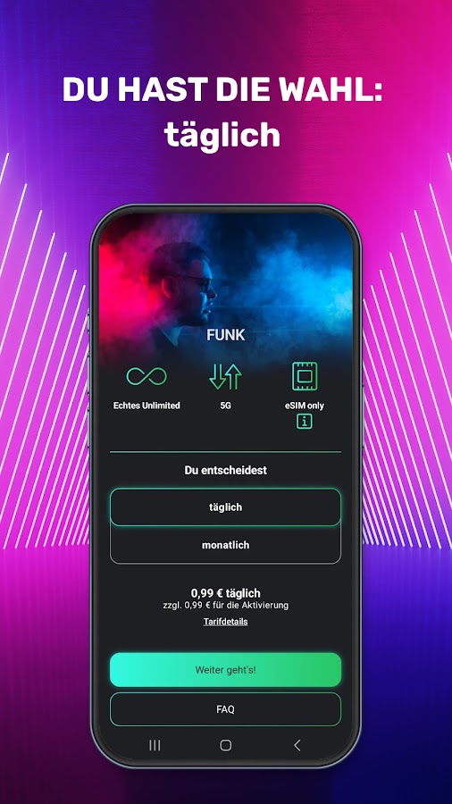 FUNK на базе freenet. Мобильная революция продолжается. Устали от долгосрочных мобильных контрактов? С нами вы можете расторгнуть их каждый день. И самое лучшее? Безлимитный интернет без пополнения баланса!