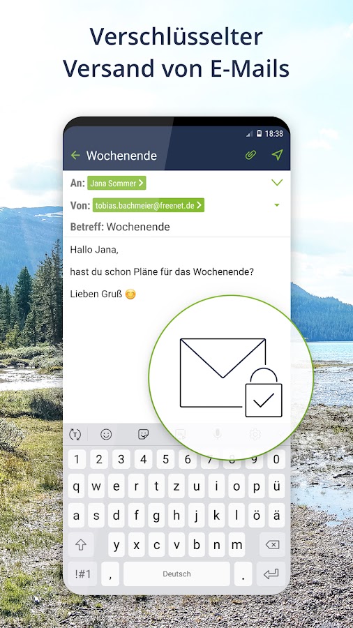 В рамках инициативы freenet, t-online.de, GMX и WEB.de «Электронная почта, сделанная в Германии» в приложении также обеспечивается комплексное шифрование SSL, чтобы предотвратить чтение вашего электронного трафика в Интернете.