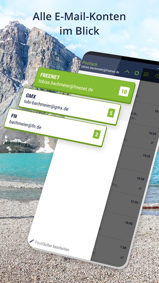 — Используйте несколько учетных записей электронной почты в одном приложении — добавляйте адреса от других поставщиков электронной почты, таких как web.de и gmx.de.