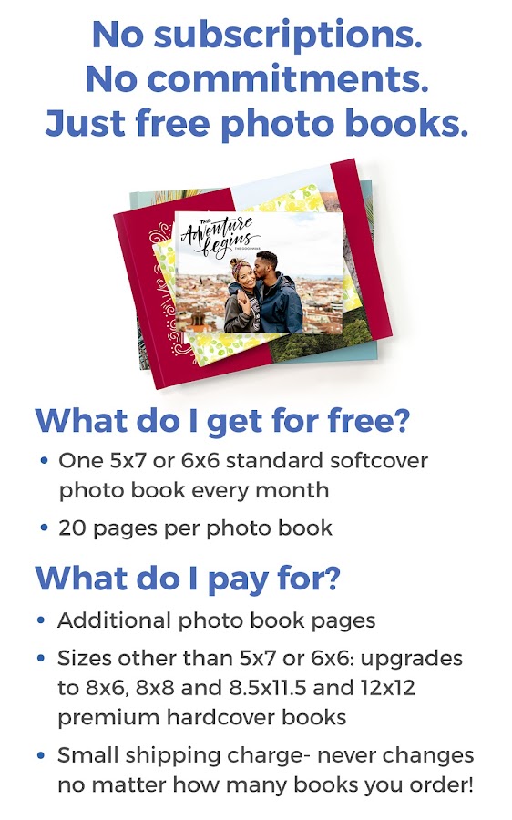 ★ Получайте одну стандартную фотокнигу в мягкой обложке 5×7 или 6×6 каждый месяц бесплатно.