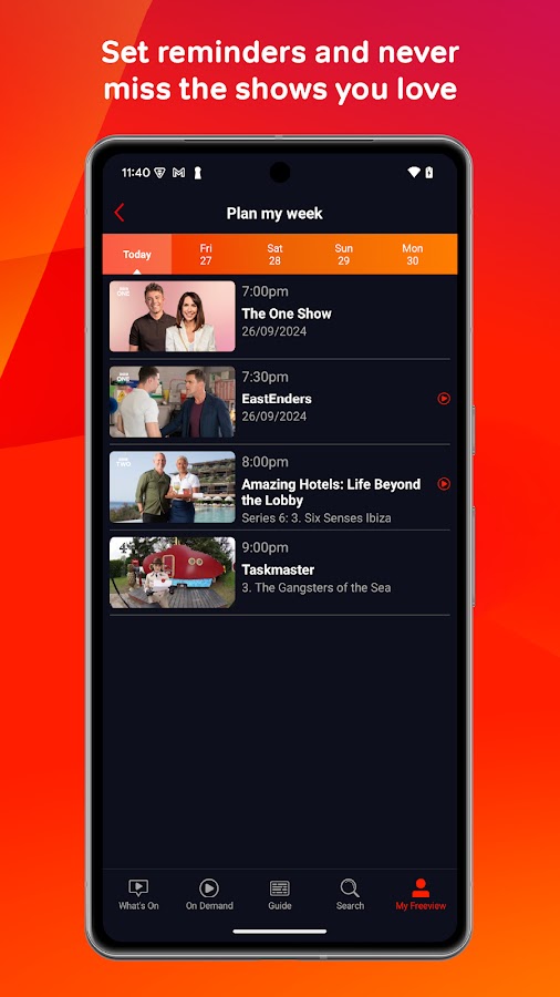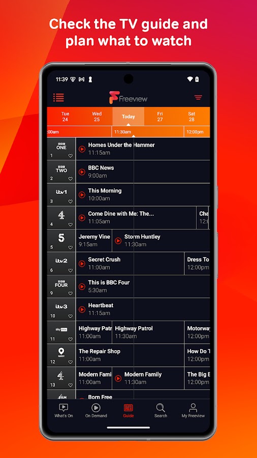 Наслаждайтесь любимыми шоу Freeview на своем мобильном телефоне совершенно бесплатно.