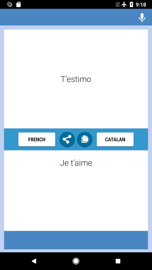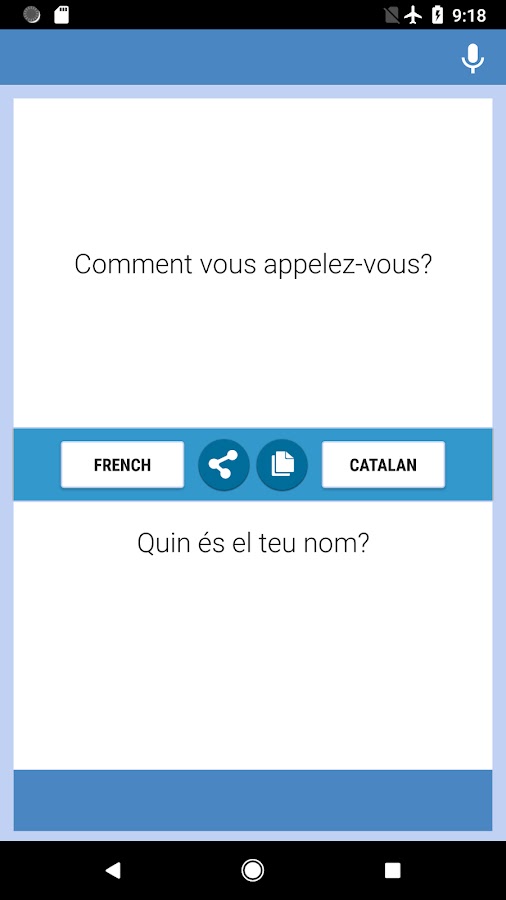 Французско-Каталонский приложение Переводчик: бесплатный и простой в использовании. Вы можете перевести текст и письмо от Французско-каталонский и каталонского на французский язык. Вы можете использовать этот конвертер для работы, в школу, на сегодняшний день, во время путешествия или во время деловых поездок, чтобы улучшить мастерство на двух языках, вы можете использовать его в качестве конвертера или переводчика Francophone словарь Каталонский-французский.