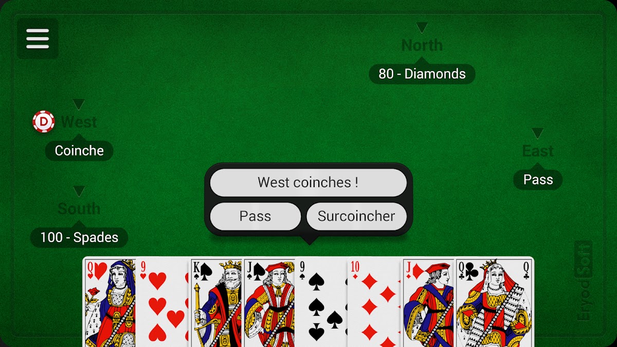 Скачайте игру French Coinche для Android бесплатно - последняя версия (3.2.5) уже доступна для установки на ваш телефон или планшет.