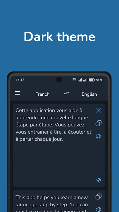 Переводчик с французского на английский — быстро, конфиденциально, офлайн. Теперь с темным режимом!