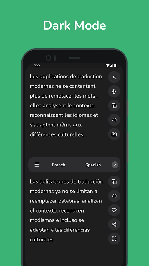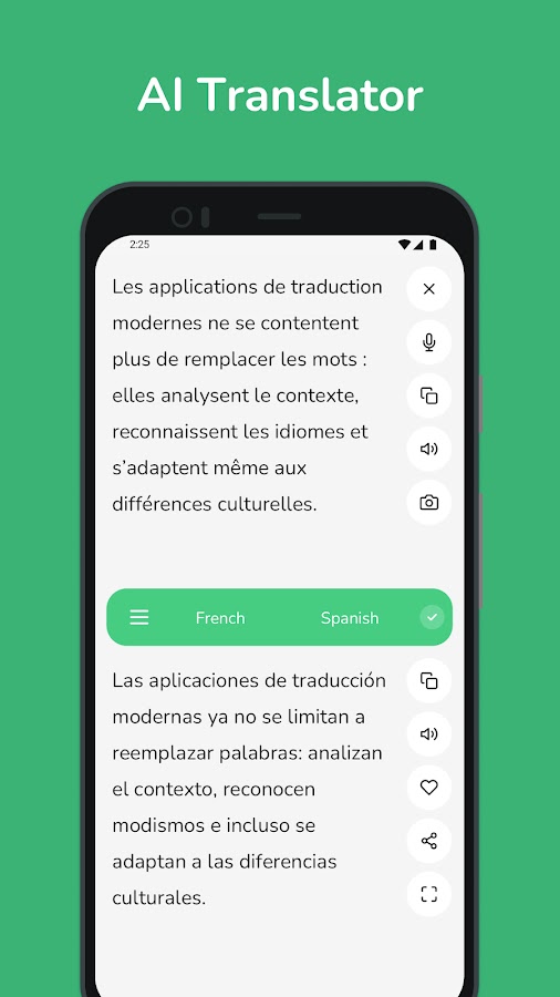 • Мгновенный перевод: получайте быстрые и точные переводы с французского на испанский и наоборот, идеально подходящие для повседневного использования.
