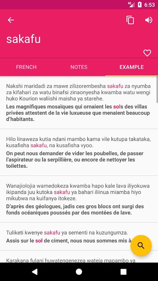 ♦ Опция поиска работает как на суахили — французском, так и на французском — суахили.