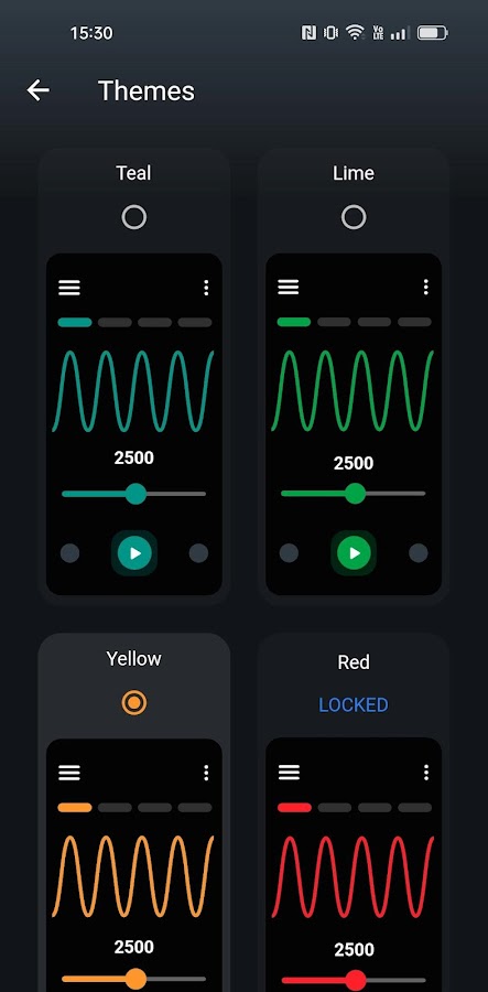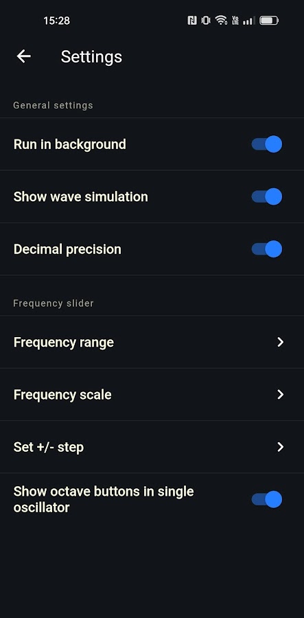 Frequency Sound Generator позволяет легко изменять звуковые волны из главного меню. Просто нажмите на значок звуковой волны и выберите синус, квадрат, пилообразный или треугольный.