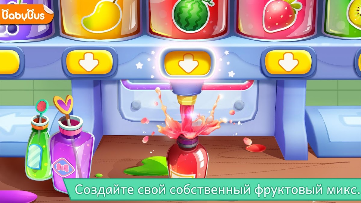 Готовить соки еще никогда не было так просто и весело! Все, что вам нужно, это коснуться экрана, и все готово! Приготовьте газированные напитки, смешайте фрукты и упакуйте бутылки сока. Похоже, вы готовы продавать свои соки!