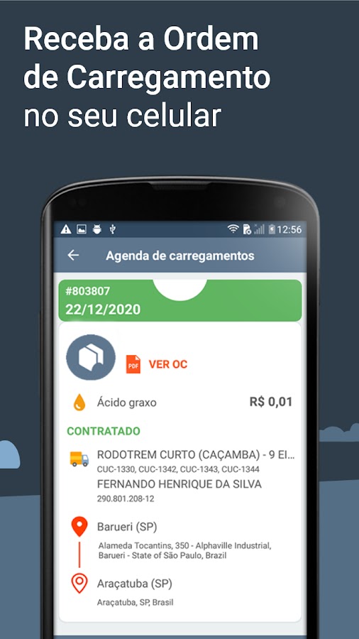 Вы знаете этот порядок загрузки? Так что теперь он у вас на ладони. Когда вас наняли для перевозки, грузоотправитель отправит вам OC в приложении Freto.