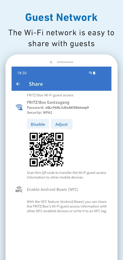 С приложением FRITZ!App Wi-Fi вы можете постоянно контролировать свою беспроводную сеть. Используйте приложение FRITZ!App Wi-Fi для лёгкого подключения смартфона или планшета Android к беспроводной локальной сети FRITZ!Box или любого другого Wi-Fi-роутера. Приложение FRITZ!App Wi-Fi также предоставляет полезную информацию о текущем беспроводном соединении. Графическая диаграмма, представленная в приложении FRITZ!App Wi-Fi, обеспечивает дополнительную прозрачность распределения каналов различных устройств в вашей беспроводной локальной сети.