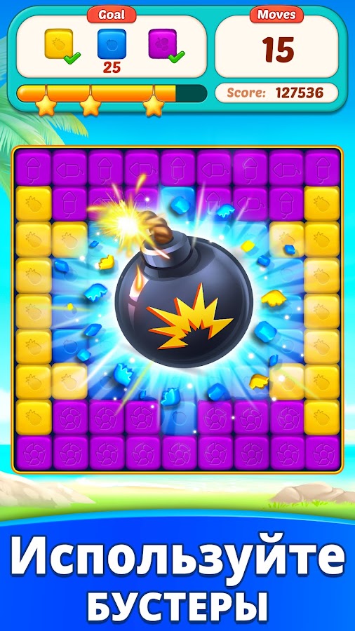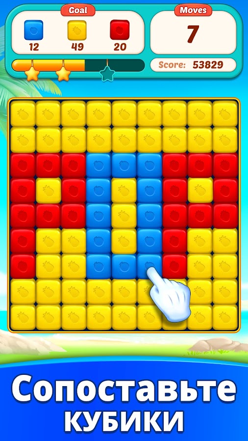 — Подбирайте пары, нажимайте и взрывайте фруктовые кубики-пазлы.