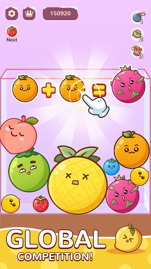 🍈 Стратегически бросайте фрукты: просто нажмите, чтобы прицелиться в то место в коробке, где приземлится следующий фрукт.