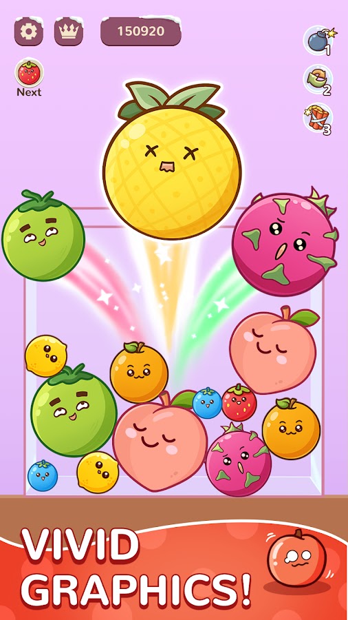 ✨ Плавная физика и эффекты: наслаждайтесь реалистичными столкновениями и восхитительной анимацией, когда вы бросаете фрукты и наблюдаете, как они сливаются.