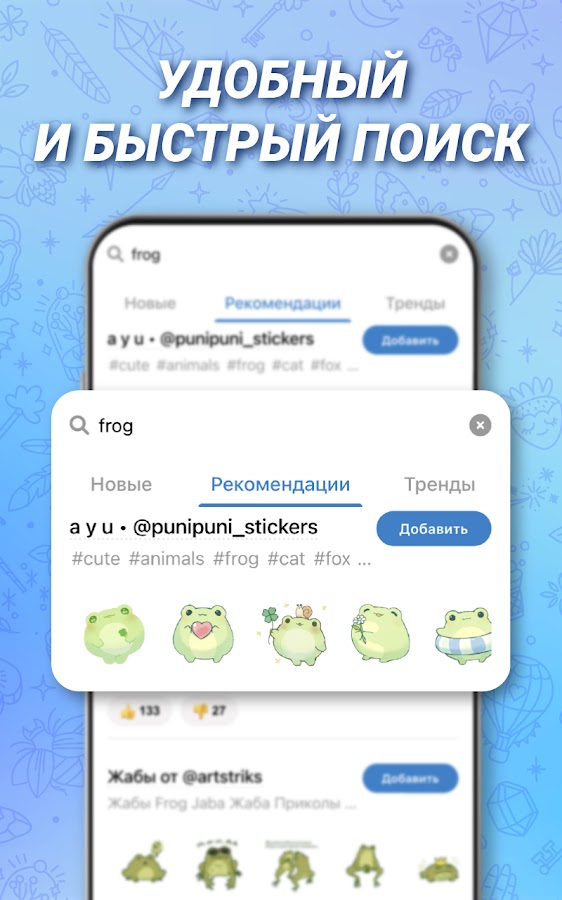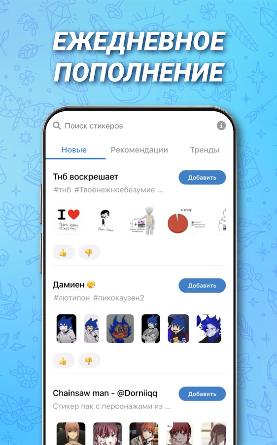 • Автоматическое пополнение каталога, новые стикеры каждый день