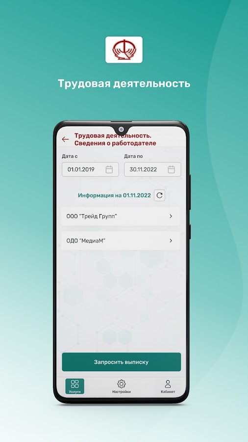 Вы сможете контролировать, уплачивает ли Ваш работодатель обязательные страховые взносы в бюджет фонда на Ваше пенсионное и социальное страхование. Для этого в мобильном приложении Вы сможете получить информацию о суммах начисленных Вам ежемесячных выплат, начисленных и уплаченных обязательных страховых взносах. Данная информация в Фонд поступает от работодателей на ежеквартальной основе – в январе за 4 квартал прошедшего года, апреле, июле, октябре – за 1, 2 и 3 квартал текущего года.