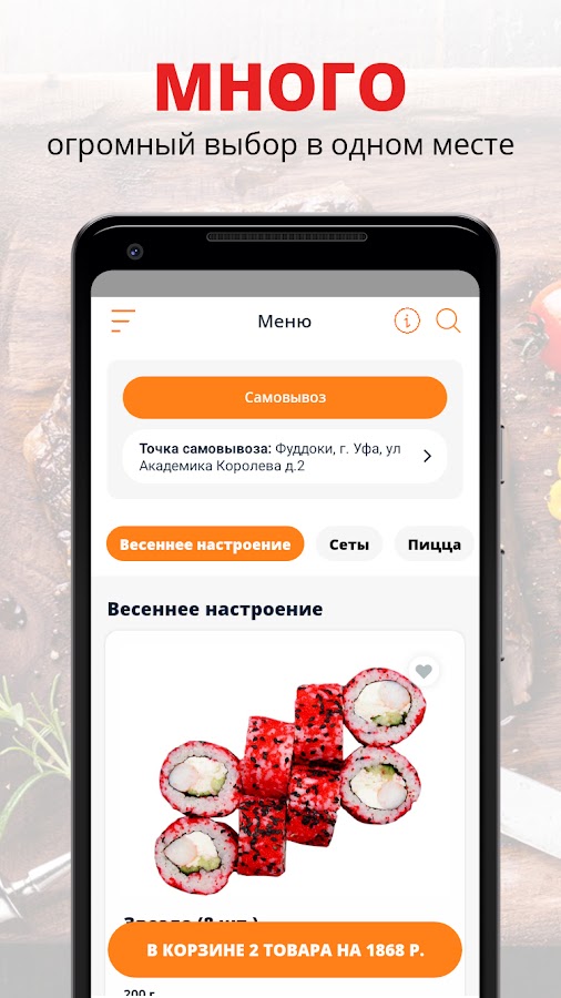 Приложение Фуддоки — это удобный способ заказа еды! Мы готовим наши блюда из качественных свежих ингредиентов и доставляем еду быстро и бережно.
