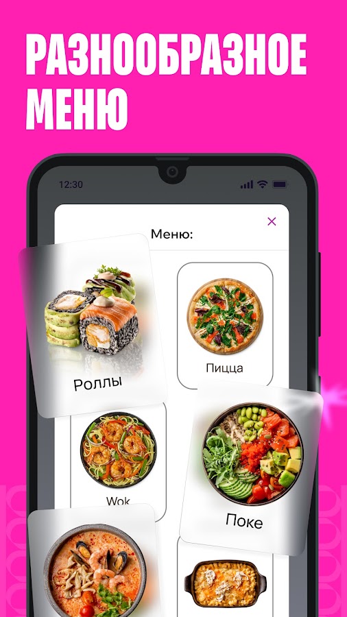 Скачайте приложение и закажите вкусные роллы, пиццу и WOK прямо сейчас.