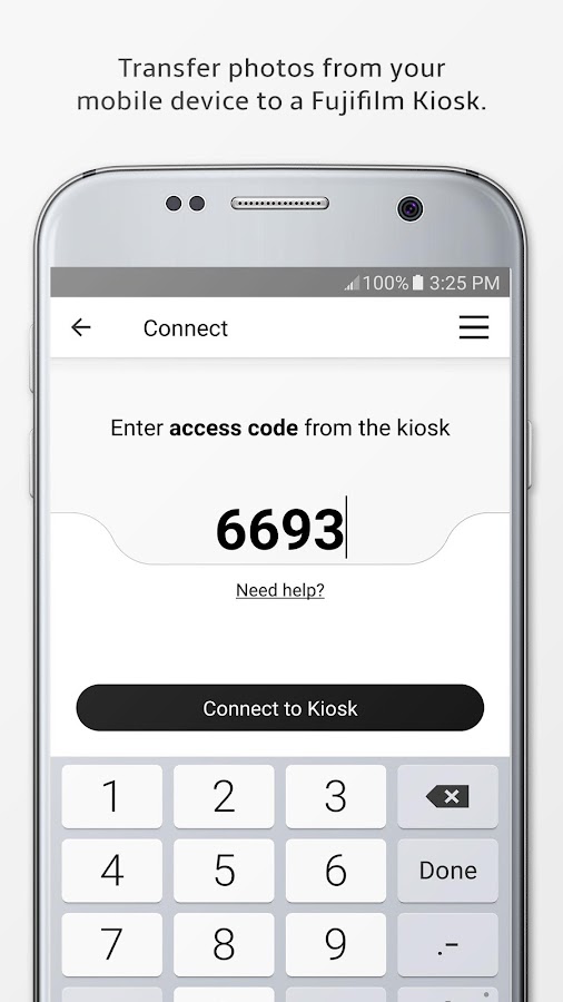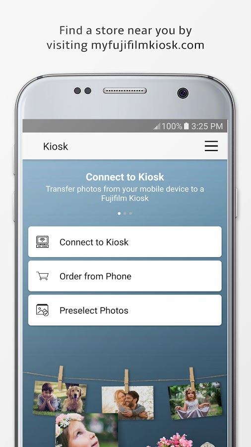 Kiosk Photo Transfer от Fujifilm позволяет легко и быстро переносить фотографии прямо с вашего мобильного устройства на Fujifilm Kiosk, чтобы вы могли печатать и создавать персонализированные фотопродукты.