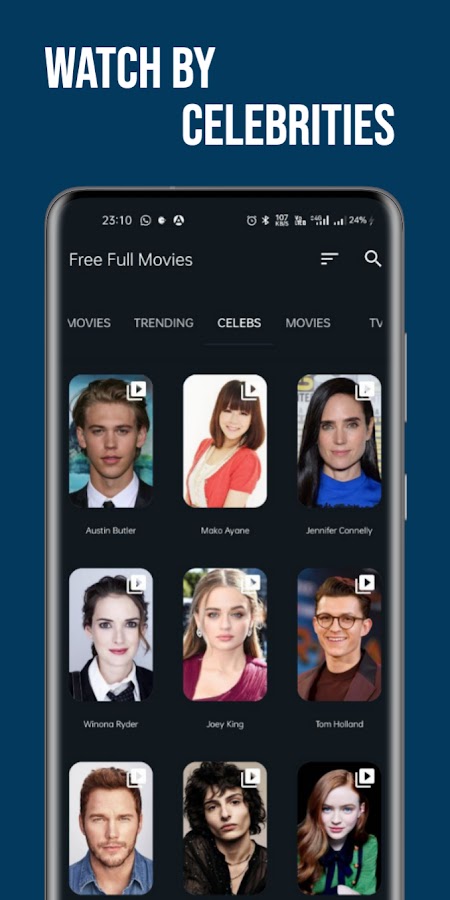 • Удобный просмотр видео и фильмов со знаменитостями