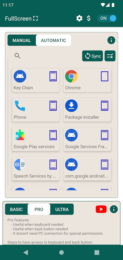 — Наслаждайтесь приложениями/играми/просмотром в полноэкранном режиме без панелей Android.