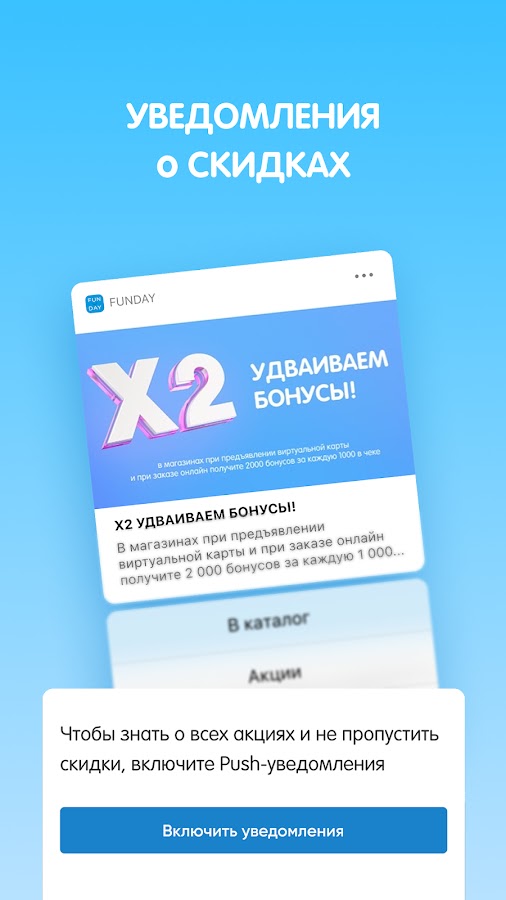 Порадуйте себя и своих близких шопингом в нашем магазине. Скачайте приложение и наслаждайтесь выгодными покупками вместе с FUNDAY!