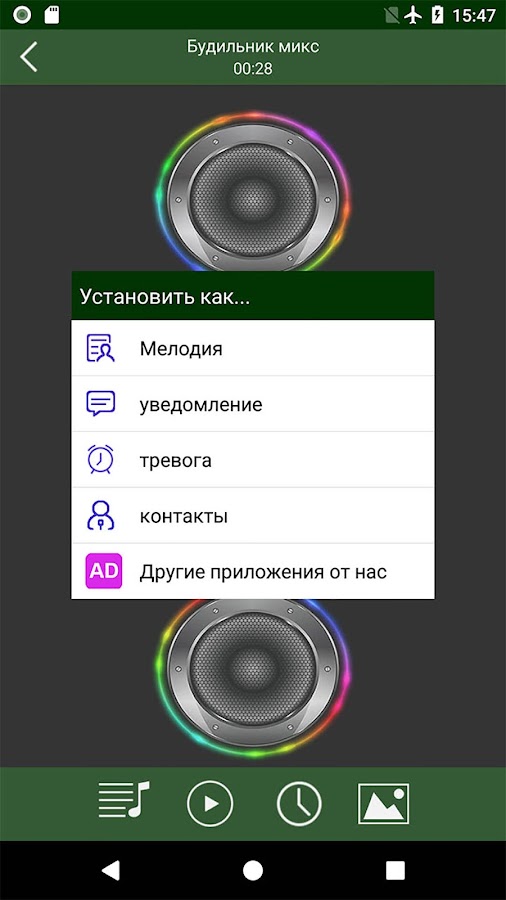 Вы можете установить мелодии будильника в качестве мелодий по умолчанию, мелодий контактов или мелодий уведомлений.
