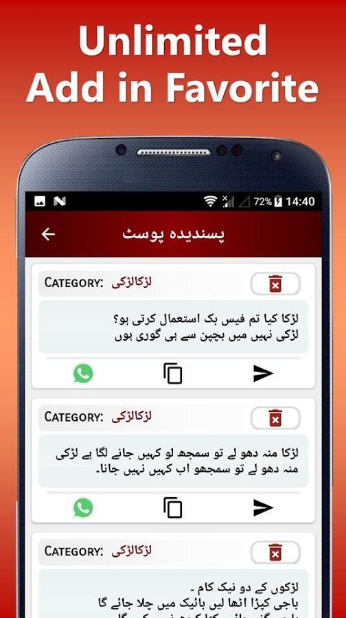 У нас есть много категорий шуток урду для людей всех возрастов. Если вы нашли шутку смешной, вы можете легко поделиться ею со своей семьей или друзьями через SMS, Facebook, WhatsApp и другие социальные приложения одним щелчком мыши.