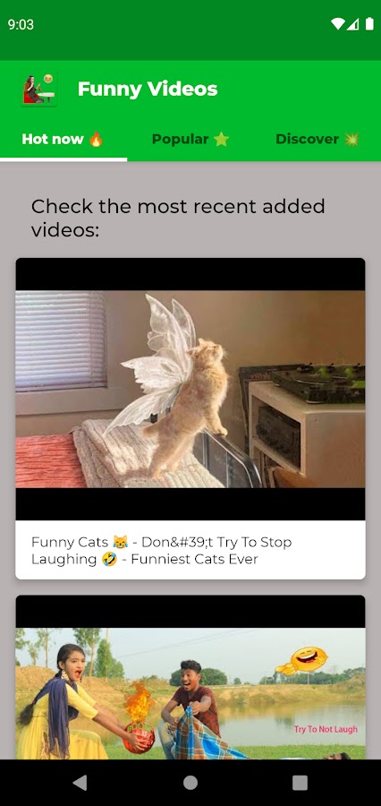 Смешные видео — лучшее приложение для Android, если вы хотите весело провести время за просмотром видео на YouTube. Более 250 развлекательных роликов готовы к публикации в социальных сетях в качестве забавного статуса для WhatsApp или Instagram. Все онлайн! Просто пролистайте наш плейлист и найдите лучшие бесплатные смешные видеоролики, например, о младенцах, которые впервые едят лимоны, или о сумасшедших животных, делающих глупые вещи. Наслаждайтесь тем, как неуклюжая девушка испортила свое свидание эпическим провалом, или просто смейтесь с лучшей коллекцией мемов. Поздравляю! Отпразднуйте приятную вечеринку по случаю дня рождения, играя в лучшем приложении для смешных видеороликов!